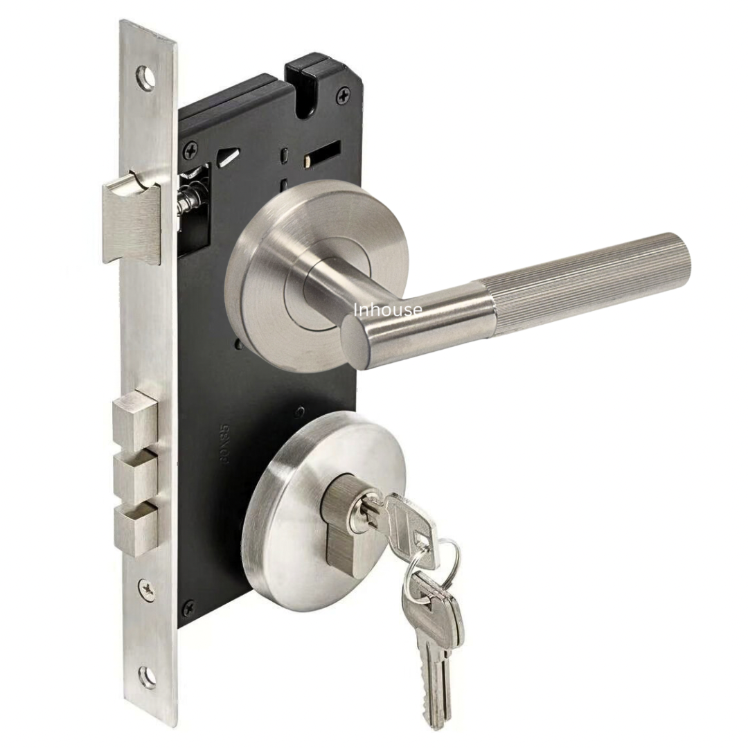 - This package includes one pair of door handles, one 60mm mortice lock, one 70mm single cylinder, and two 65mm round escutcheons